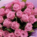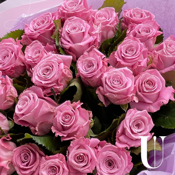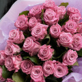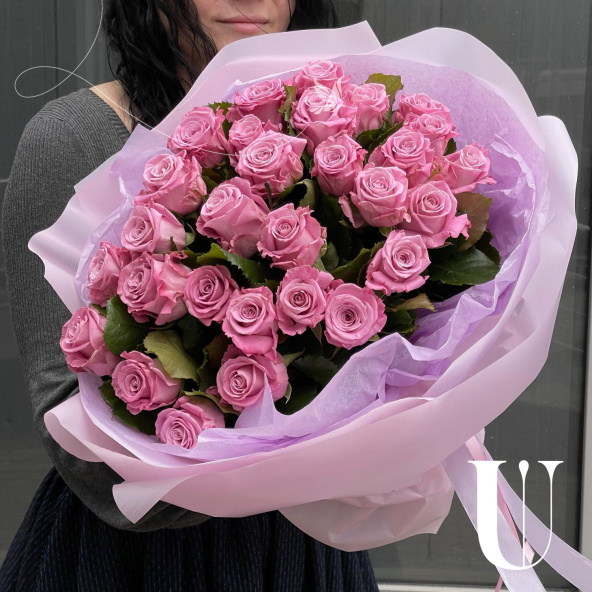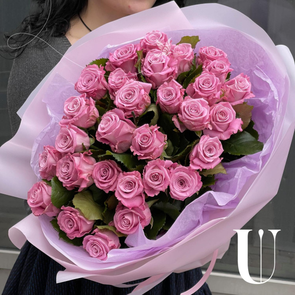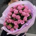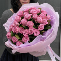 Монобукет из кустовых роз сорта Черри Хеопс в дизайнерской упаковке