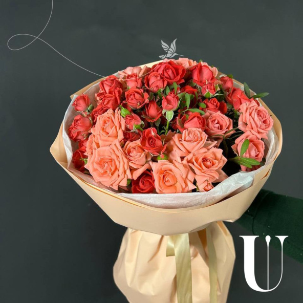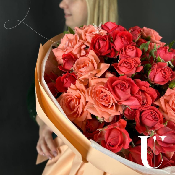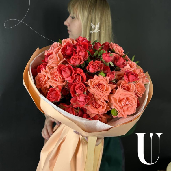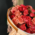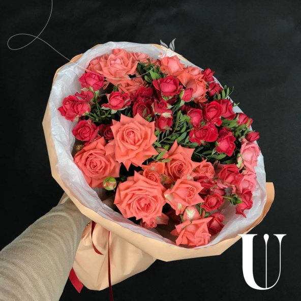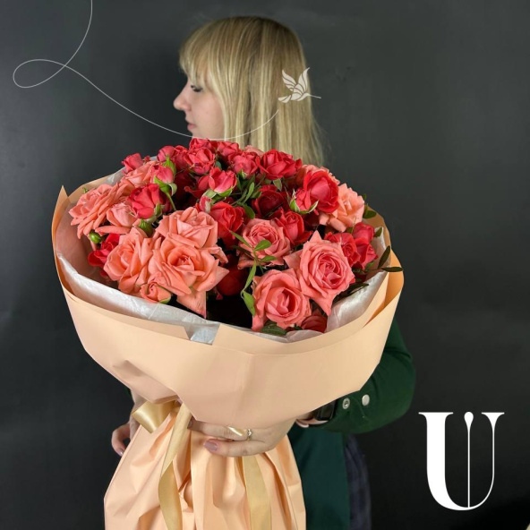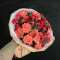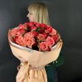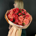 Букет из красных кустовых роз в дизайнерской упаковке
