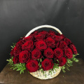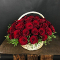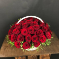 Красные розы в корзине с зеленью создают атмосферу романтики и нежности, подчеркивая вашу безграничную любовь. Этот букет идеально подойдет для особого случая, будь то день рождения, юбилей или просто проявление заботы и внимания к близкому человеку. Подарите этот букет и запечатлите вечные чувства в ярких красках красных роз.