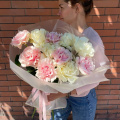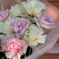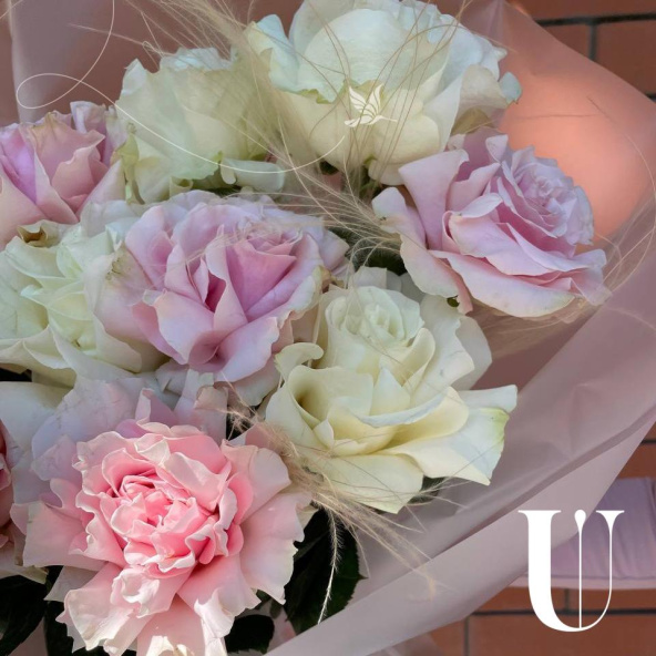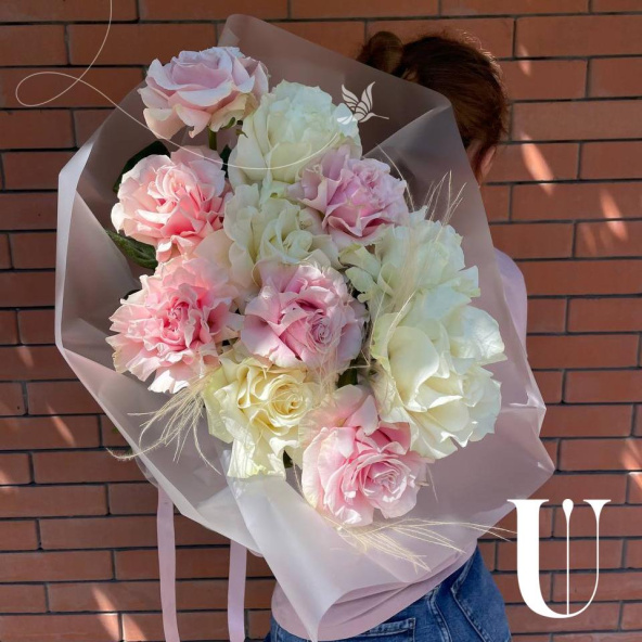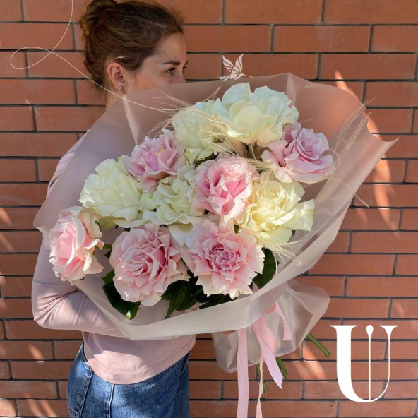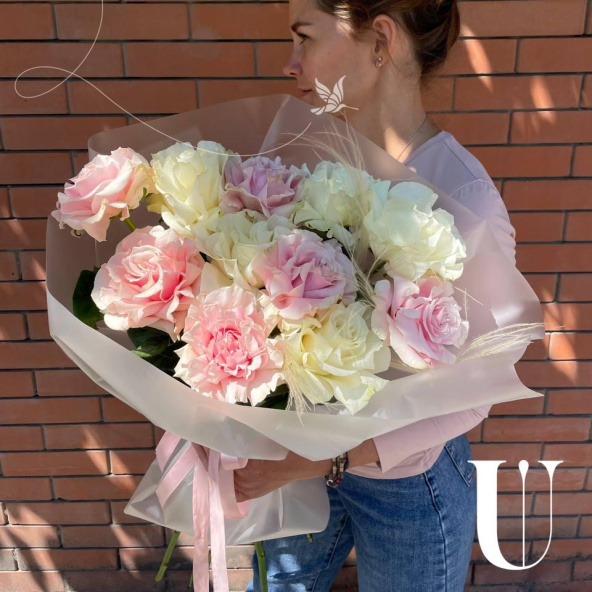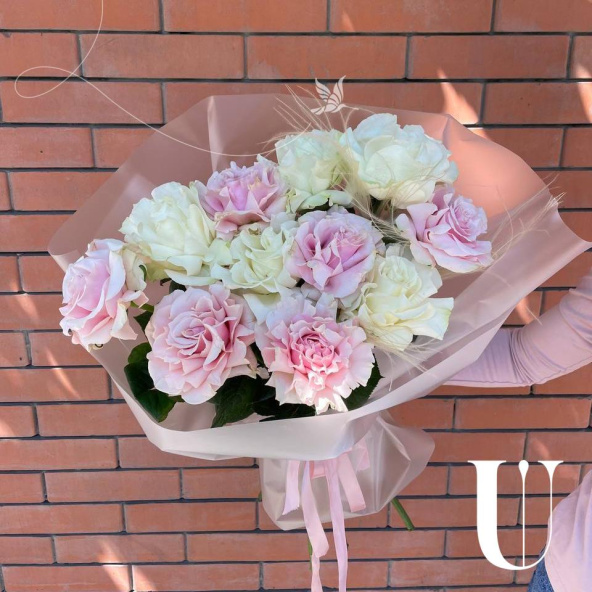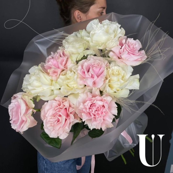 Этот букет, составленный из кружевных белых и нежно-розовых роз, словно раскрывает свои лепестки, будто символ нежности и любви. Каждый цветок в этом букете выглядит как нежное прикосновение, напоминая о том, как важно ценить красоту момента и радоваться каждому дыханию весны. Нежные оттенки роз идеально гармонируют друг с другом, создавая образ изысканности и изящества, который запомнится на долгие годы.