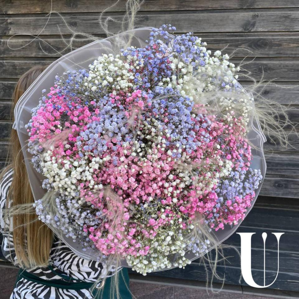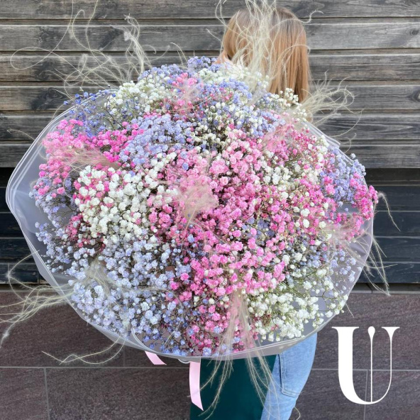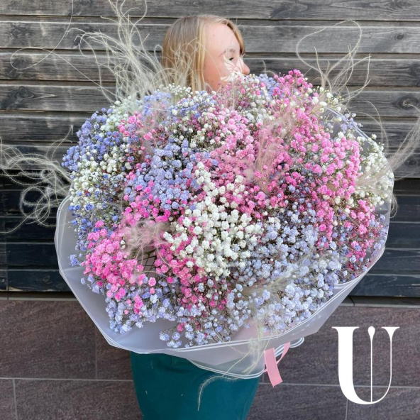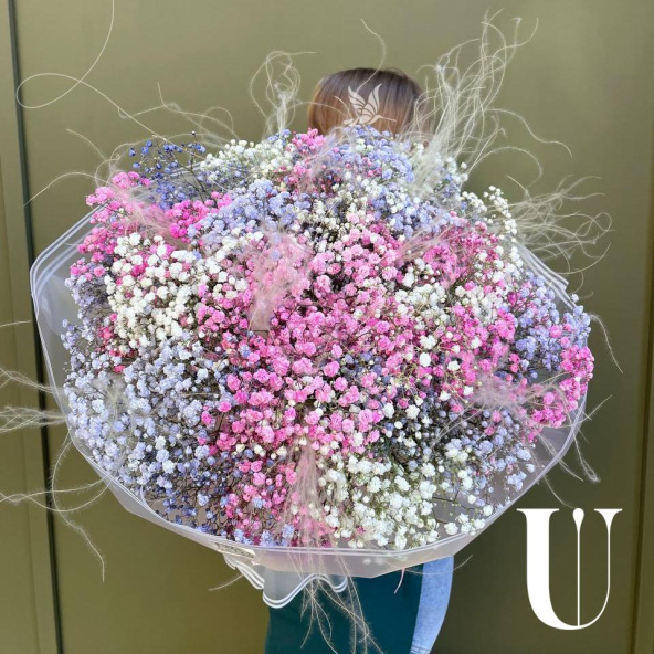 Букет "Радужное облако гипсофилы"