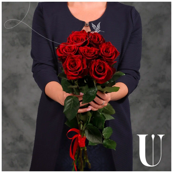 Букет из 7 красных Эквадорских роз 60 см с атласной лентой - это стильный и элегантный подарок, который подойдет для любого повода. В составе букета розы сорта Эксплорер – это высококачественные цветы, которые известны своим насыщенным красным цветом и приятным ароматом, который будет радовать вас и ваших близких.